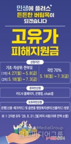 시 관계자는 “고물가로 어려운 시기에 이번 지원금이 시민들의 부담을 덜어주는 실질적인 도움이 되길 바란다”며 “지역 경제 회복과 시민 삶의 안정을 위해 최선을 다하겠다”고 밝혔다.