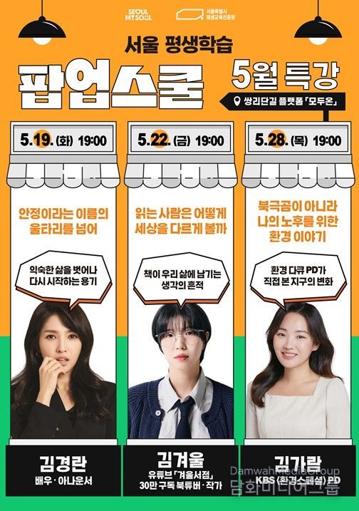 시민행정신문 강갑수 기자 | 서울특별시평생교육진흥원이 지난 4월 도봉구 쌍문역 인근에 개관한 서울시 첫 역세권 평생학습 거점 ‘서울 평생학습 팝업스쿨’을 확대 운영한다. 시범운영 한 달간 500여 명이 참여했으며, 5월에는 정규강좌, 명사특강, 러닝숍 등 3개 영역에서 총 13개 과정을 편성하고, 650명의 시민 참여를 목표로 한다.