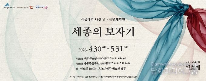 시민행정신문 기자 | (재)세종시문화관광재단은 제629돌 세종대왕 나신 날(5월 15일)을 기념하여 4월 30일부터 5월 31일까지 박연문화관 전시실과 세종중앙공원 관리동에서 특별체험전 ‘세종의 보자기’를 선보인다.