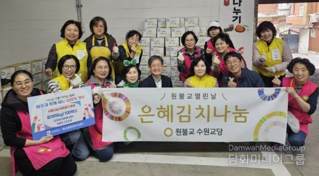 이날 후원된 김치는 원불교 수원교당 관계자들이 이른 아침부터 신선한 재료를 손질하고 정성을 다해 직접 담근 것으로, 포장 작업까지 마친 뒤 매교동 행정복지센터에 전달됐다.