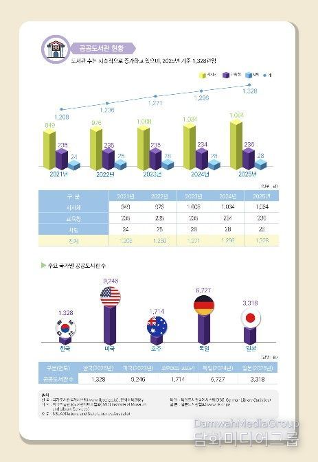 시민행정신문 이존영 기자 | 문화체육관광부는 한국도서관협회와 함께 실시한 ‘2026년 전국 공공도서관 통계조사(2025년 실적 기준)’ 결과를 발표했다. 이번 조사는 전국 1,328개 공공도서관의 현황을 분석한 국가승인통계로서 대한민국 도서관 서비스의 양적·질적 성장을 한눈에 보여준다.