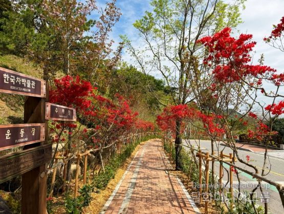 한국차문화공원 일원에는 ‘복합경관숲’이 조성된다. 품평관과 북루 사이 계곡 구간에는 목교 2개소를 설치하고, 팥꽃나무·공조팝나무·사계장미·황금실화백 등 다양한 수종을 식재해 경관을 강화했다.