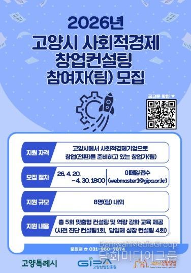 시민행정신문 이세훈 기자 | 고양산업진흥원이 운영하는 고양시사회적경제지원센터가‘2026년 고양시 사회적경제 창업컨설팅 사업’에 참여할 예비 창업자(팀)을 오는 30일까지 모집한다.