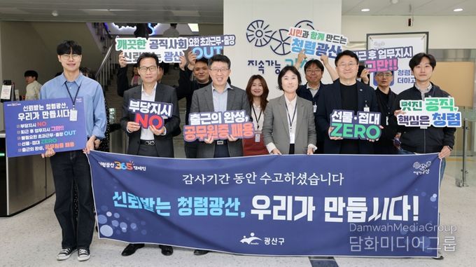 시민행정신문 강갑수 기자 | 광주 광산구가 24일 구청 1층 로비에서 공직자들을 대상으로 청렴광산 365캠페인을 진행했다.