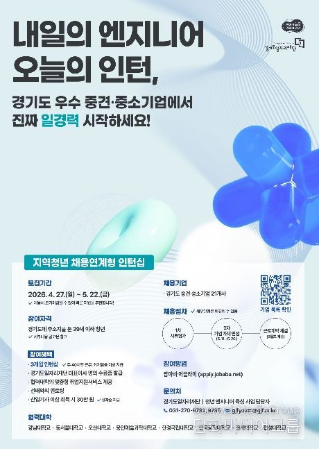 시민행정신문 강갑수 기자 | 경기도일자리재단은 도내 청년을 대상으로 직무 중심의 실무 경험을 제공하는 ‘청년 엔지니어 육성 사업: 지역 청년 채용 연계형 인턴십’ 참여자를 모집한다.