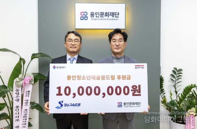 시민행정신문 강갑수 기자 | 용인문화재단은 지난 23일 경수고속도로(주)로부터 용인시 관내 청소년 예술 장학사업인 ‘용인청소년예술꿈드림’ 지원을 위한 기부금 1,000만 원을 기탁받았다고 밝혔다. 이번 후원은 용인서울고속도로를 이용하는 통행차량 1대당 1원씩 적립하고, 사회공헌예산을 추가로 편성해 지역사회 환원과 기업의 사회적 책임 실천 차원에서 추진됐다.