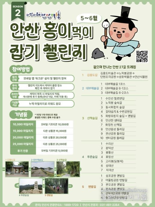 이번 2회차는 ‘걸으며 만나는 안산’을 주제로 진행된다. 대부도와 시내 주요 산책로, 숲길, 공원 맨발길 등 총 27곳에서 캐릭터를 찾는 방식으로 운영되며, 1회차 참여자도 다시 참여할 수 있다.