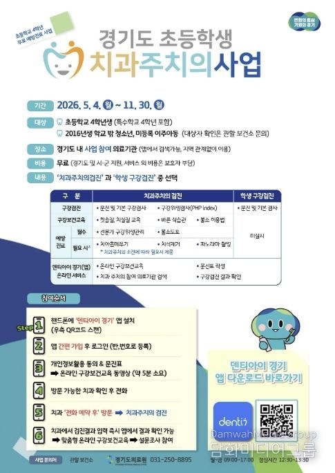 시민행정신문 기자 | 안산시는 경기도와 협력해 관내 초등학교 4학년 학생을 대상으로 ‘초등학생 치과주치의 사업’을 추진한다고 27일 밝혔다.