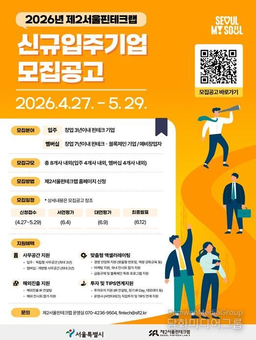 시민행정신문 이세훈 기자 | 서울시는 초기 핀테크 스타트업의 시장 안착을 지원하는 전용 육성 거점 ‘제2서울핀테크랩’에 입주할 기업 총 8개사(입주기업・멤버십 기업 각 4개사)를 오는 5월 29일까지 모집한다고 밝혔다.