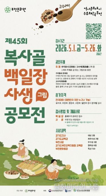 부천문화원 권순호 원장은 “설립 60주년이라는 뜻깊은 해에 열리는 이번 공모전은 지역 문화의 가치를 시민들과 함께 공유하는 소중한 기회가 될 것”이라며 “특히 ‘고수레’와 같은 나눔의 가치가 이번 공모를 통해 우리 사회의 따뜻한 공동체 문화로 다시금 뿌리 내리길 기대한다”고 밝혔다.