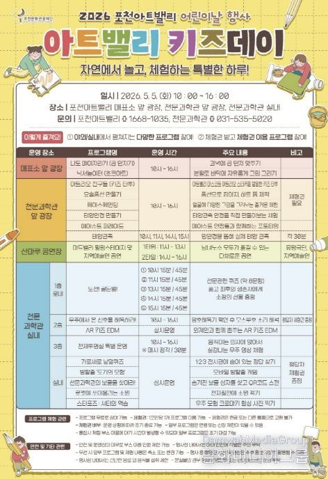 시민행정신문 기자 | 포천문화관광재단이 운영하는 포천아트밸리는 오는 5월 5일 어린이날을 맞아 어린이와 가족을 위한 체험형 문화행사 ‘아트밸리 키즈데이’를 개최한다.