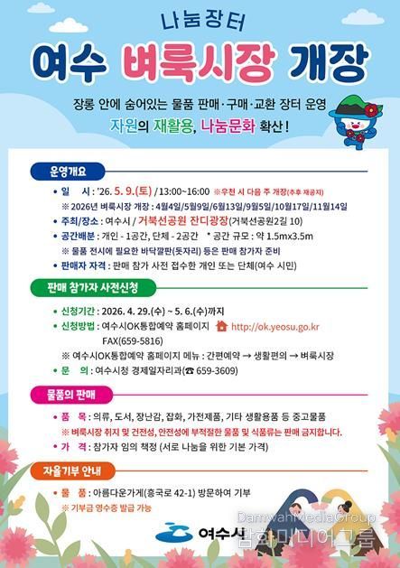 한편, 다음 여수 벼룩시장은 6월 13일 오후 1시부터 4시까지 같은 장소에서 개최될 예정이다.