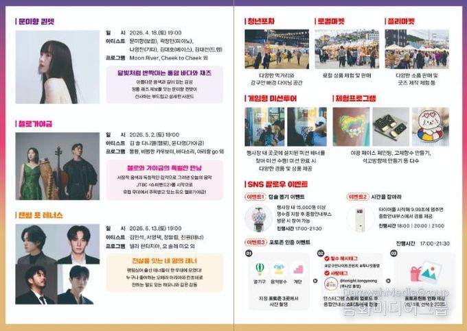 시민행정신문 기자 | 통영시는 오는 5월 2일 강구안 해상무대 및 일원에서 '2026 강구안 나이트 프린지, ‘투나잇 통영 즐거울 樂’'두 번째 공연을 개최한다.