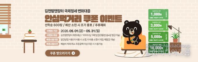 이어, ‘지역경제 활성화를 위한 우리 농산물 소비촉진 특별전’을 운영해 김천팜앤장터 입점 상품을 대상으로 20% 할인 지원을 실시한다. 이를 통해 소비자는 우수 농특산물을 보다 합리적인 가격에 구매할 수 있고, 농가는 안정적인 판매 기회를 확보할 수 있을 것으로 기대된다.