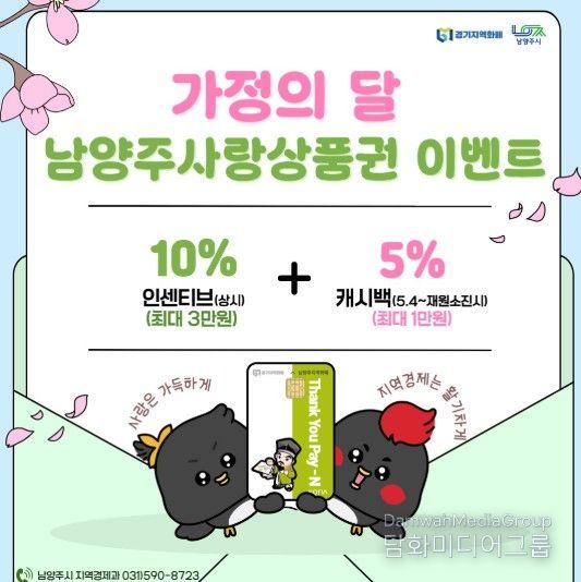 시민행정신문 이세훈 기자 | 남양주시는 남양주사랑상품권 인센티브 예산을 확대하고 5월 가정의 달을 맞아 특별 혜택을 제공한다고 27일 밝혔다.