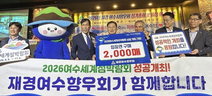 시민행정신문 강갑수 기자 | (재)2026여수세계섬박람회조직위원회는 지난 26일 재경여수향우회 회장 이취임식에서 향우회와 2,200만 원 상당의 입장권 구매약정을 체결했다.