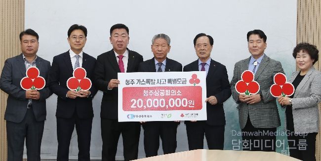 청주상공회의소는 성금 2천만원을 청주시에 전달했다. 차태환 청주상공회의소 회장은 “예기치 못한 사고로 어려움을 겪고 있는 이웃들에게 조금이나마 힘이 되기를 바란다”며 “앞으로도 회원들과 함께 지역사회 소외계층과 재난 피해 이웃을 위한 나눔 활동을 지속적으로 이어가겠다”고 말했다.