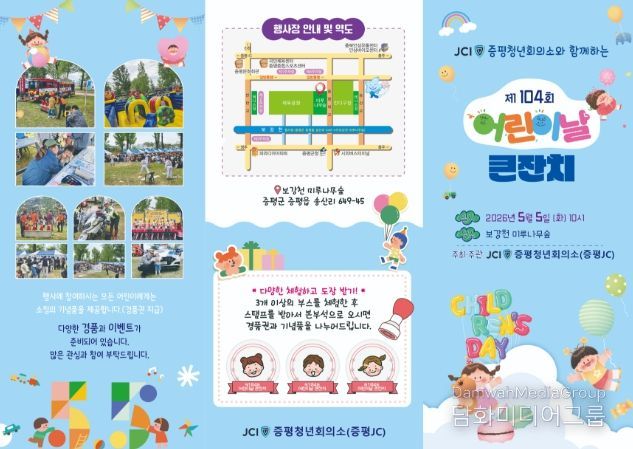 시민행정신문 강갑수 기자 | 충북 증평군이 오는 5월 5일 104회 어린이날을 맞아 보강천 미루나무숲에서 온 가족이 함께 즐길 수 있는 기념행사를 연다.