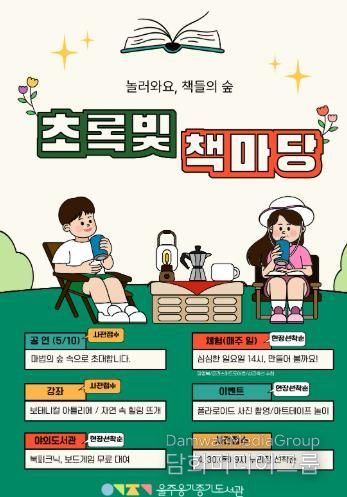 시민행정신문 강갑수 기자 | 울주군 옹기종기도서관이 다음달 2일부터 오는 6월 30일까지 상설형 야외도서관 ‘초록빛 책마당’을 운영한다고 28일 밝혔다.