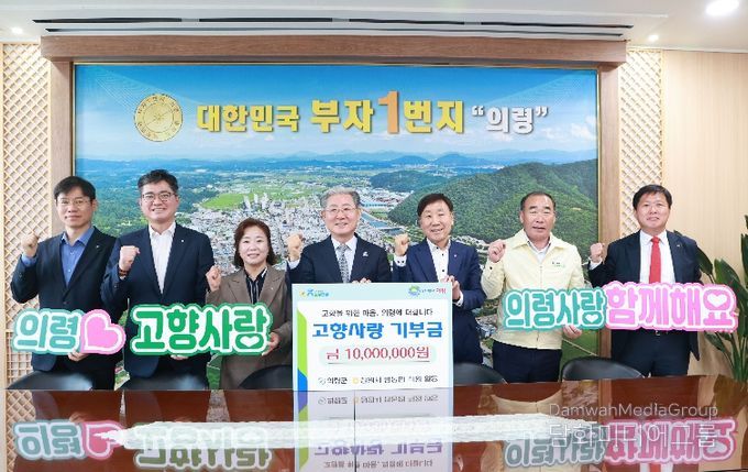 시민행정신문 강갑수 기자 | 의령군은 지난 24일 창원시 NH농협 임직원 3명이 군을 방문해 지역 농협 임직원들이 모금한 고향사랑기부금 1,000만원을 전달했다고 밝혔다.
