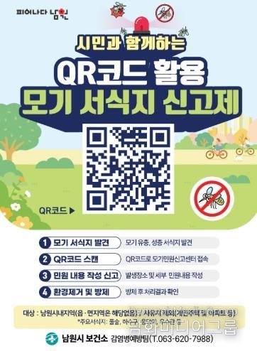시민행정신문 강갑수 기자 | 남원시보건소가 여름철 모기 매개 감염병 예방과 시민 편의를 위해 스마트폰 GPS 위치 정보를 활용한 'QR코드 모기 서식지 신고제'를 운영한다고 밝혔다.