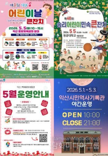 정헌율 익산시장은 "어린이날 연휴를 맞아 축제부터 이색 체험, 생태 힐링까지 모든 세대가 만족할 수 있는 콘텐츠를 내실 있게 준비했다"며 "익산의 아름다운 자연과 문화를 통해 가족과 함께 행복하고 소중한 추억을 만드시길 바란다"고 말했다.
