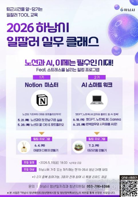 시민행정신문 강갑수 기자 | 하남시는 관내 청년들이 현장에서 바로 활용할 수 있는 실무 역량을 키우고 또래 청년 간 교류 기회를 확대하기 위해 오는 5월부터 ‘2026년 하남시 일잘러 실무클래스’를 운영하고 1기와 2기 참여자를 모집한다고 밝혔다.
