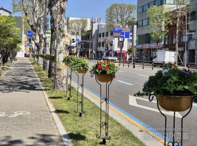 특히 이번 환경정비는 봄철에 어울리는 꽃을 활용해 도심 속에서 자연을 가까이 느낄 수 있도록 하고, 단조로운 도로변 공간을 보다 밝고 쾌적한 거리로 변화시키는 데 중점을 두었다.