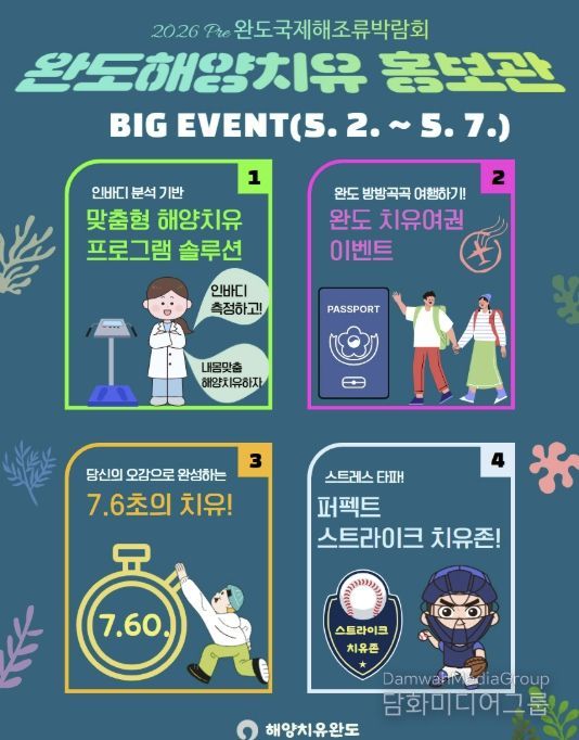 시민행정신문 강갑수 기자 | ‘2026 Pre 완도국제해조류박람회’ 개최 기간(5.2~5.7) 동안 완도만의 해양치유 콘텐츠를 선보이는 ‘해양치유 홍보관’을 운영한다.