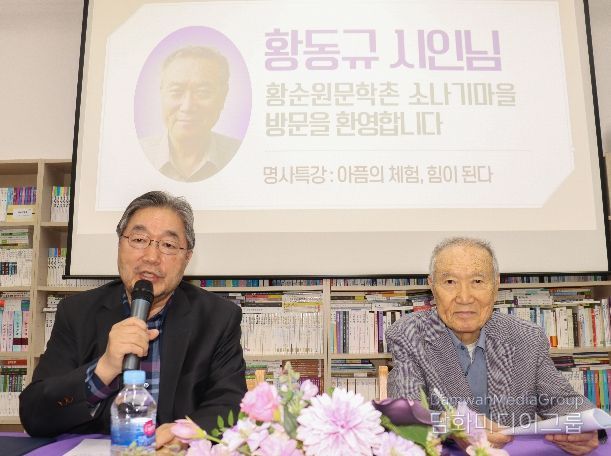 황 시인은 “아픔이나 위기는 피한다고 해서 사라지지 않는다. 오히려 피할수록 더 커진다”며 “가장 아프게 견뎌낸 기억은 이후의 아픔을 이겨내는 힘이 되고, 타인의 고통과 생명의 의미를 더 깊이 이해하게 하는 바탕이 된다”고 말했다. 이어 문학에서 체험의 중요성을 강조했다.