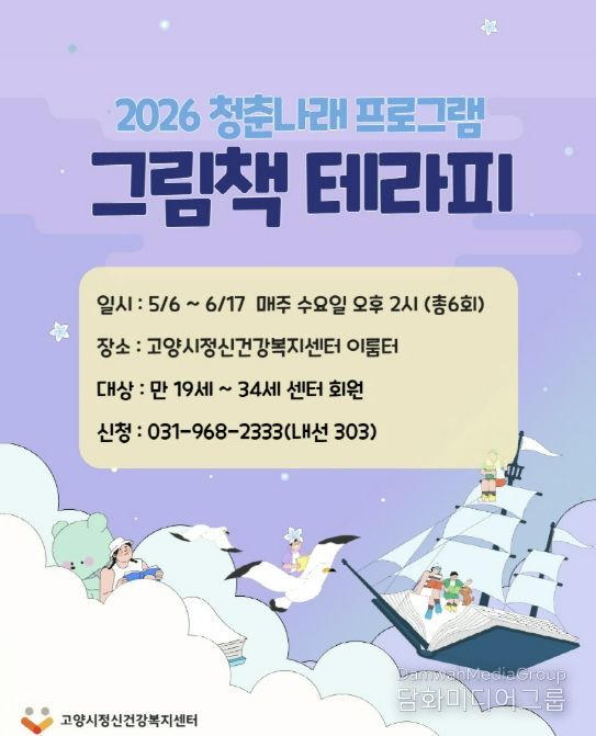 시민행정신문 강갑수 기자 | 고양시정신건강복지센터는 청년들의 정서적 안정과 자기 이해를 돕기 위해 2026년 청춘나래 집단프로그램 ‘그림책 테라피’를 오는 5월 6일부터 운영한다.