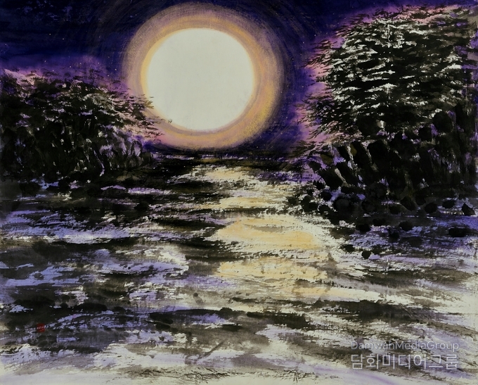 특히 강렬한 색채와 먹의 농담이 만들어내는 대비는 기존 수묵화의 틀을 넘어서는 시도로 평가된다. 보라빛 달빛, 황금의 원형, 그리고 먹의 깊은 층위는 단순한 재현을 넘어 ‘감각의 회화’로 진화한 K-수묵의 현재를 보여준다.