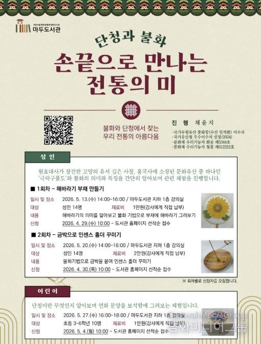 마두도서관 관계자는 “이번 프로그램에 참여하는 시민들이 전통 미술의 아름다움을 직접 체험하며 우리 문화유산에 대한 이해와 관심을 높이는 계기가 되길 바란다”고 말했다.