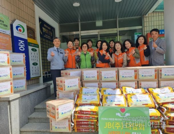 JB㈜ 임원 배우자 모임인 다담회는 이날 지역 이웃을 위해 라면 50박스와 쌀(10kg) 50포 등 약 400만 원 상당의 생필품을 천안시자원봉사센터에 기탁했다.