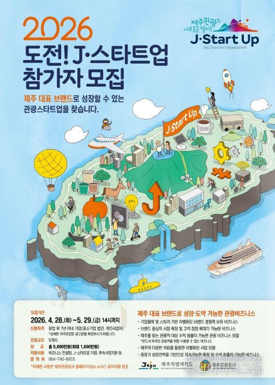 시민행정신문 이세훈 기자 | 제주특별자치도와 제주관광공사(사장 고승철)는 오는 5월 29일까지 온라인 채널을 통해 제주 관광산업 혁신을 선도할 유망 기업을 발굴하고 육성하기 위해 ‘2026 도전! J-스타트업’ 참가기업을 모집하고 있다고 28일 밝혔다.