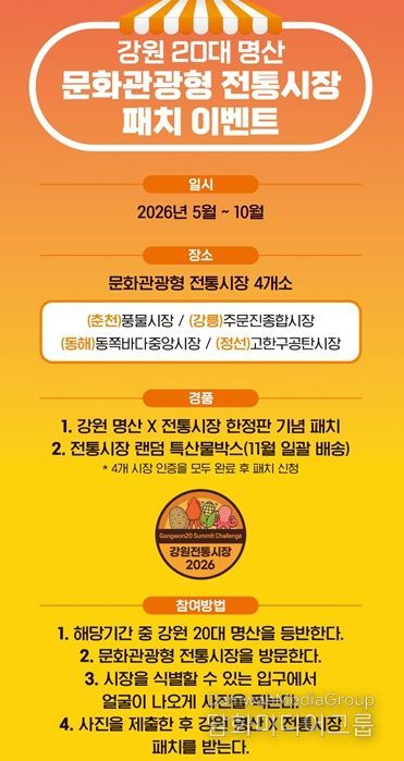 아울러 올해에는 문화관광형 전통시장인 △(춘천)풍물시장 △(강릉)주문진종합시장 △(동해)동쪽바다중앙시장 △(정선)고한구공탄시장에서 특별 이벤트를 진행한다.