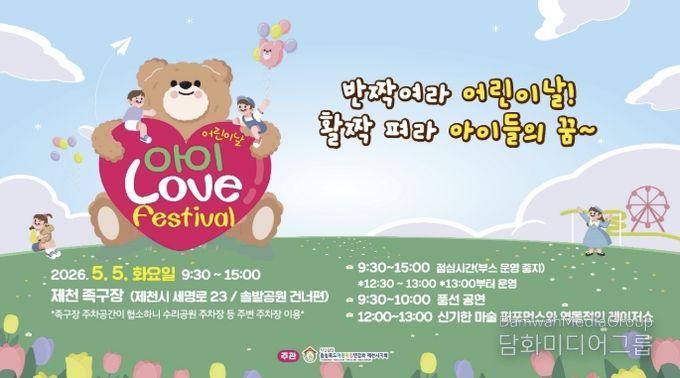 이번 행사는 오전 9시 30분부터 오후 3시까지 제천족구장에서 열리며, 어린이와 가족이 함께 즐길 수 있도록 기념식과 공연, 체험활동 등 다양한 프로그램이 진행될 예정이다.