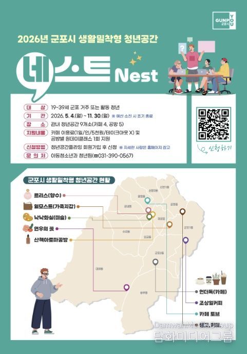 군포시 관계자는 “이번 협약을 계기로 민관 협력 청년생태계가 활성화될 수 있도록 더욱 노력하겠다”며 “청년공간 네스트를 통해 청년들이 자신만의 꿈을 향해 비상할 수 있도록 지원을 아끼지 않겠다”고 밝혔다.