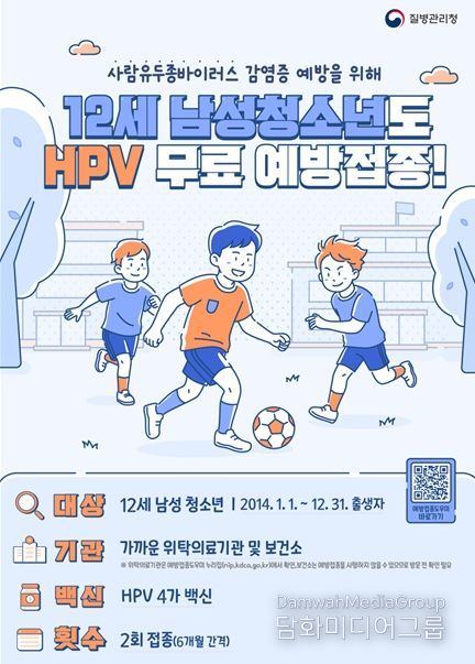 시민행정신문 기자 | 인천광역시는 2026년 5월 6일부터 12세 남성 청소년(2014년생) 대상으로 사람유두종바이러스(Human Papillomavirus, HPV) 국가예방접종 지원을 시작한다.