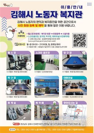 시 관계자는 “이번 무상 조치로 고된 업무에 지친 노동자들이 부담 없이 체력을 단련하고 휴식을 즐길 수 있기를 기대한다”며 “근로자가 행복한 ‘따뜻한 행복도시 김해’를 만들기 위해 현장 중심의 복지 행정을 펼쳐 나가겠다”고 말했다.