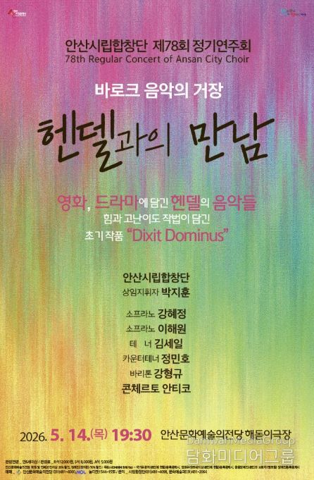 특히 공연의 하이라이트로는 헨델 초기 걸작인 ‘Dixit Dominus’가 무대에 오른다. 화려한 대위법과 빠른 전개, 장엄한 합창이 특징인 이 곡을 안산시립합창단의 탄탄한 앙상블로 만나볼 수 있을 것으로 기대된다.