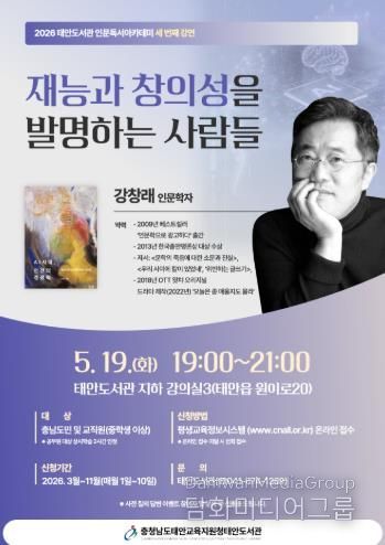 시민행정신문 기자 | 충청남도태안교육지원청태안도서관은 오는 5월 19일 오후 7시 도서관 지하 강의실에서 ‘재능과 창의성을 발명하는 사람들’을 주제로 인문독서 아카데미를 운영할 예정이다.