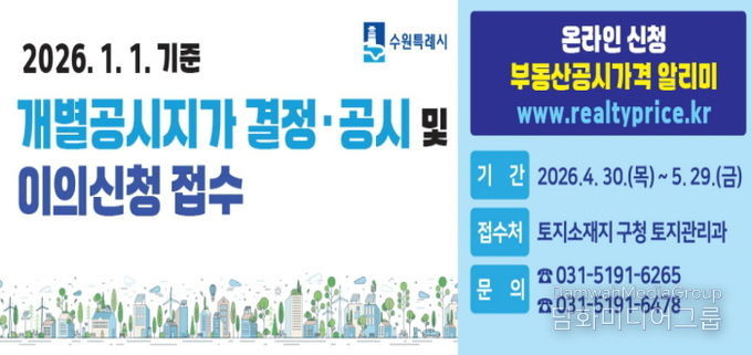 시민행정신문 강갑수 기자 | 수원시 권선구는 4월 30일 결정·공시되는 개별공시지가에 대해 4월 30일부터 5월 29일까지 이의신청을 접수한다고 밝혔다.
