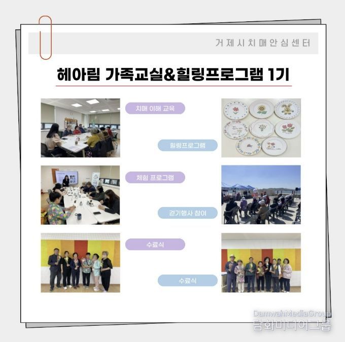 시민행정신문 강갑수 기자 | 거제시치매안심센터는 치매 대상자 가족 지원을 위해 3월부터 4월까지 8주간 ‘헤아림 가족교실’과 ‘힐링프로그램’ 1기를 성공적으로 운영하고 지난주 수료식을 개최했다.
