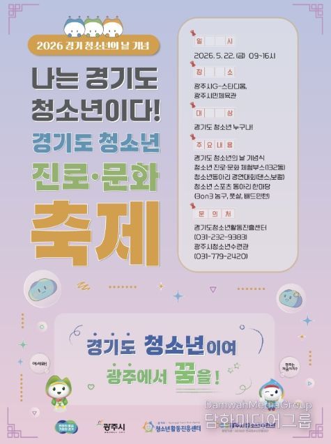 시민행정신문 기자 | 광주시는 오는 5월 22일 광주시 G-스타디움 및 광주시민체육관 일원에서 ‘2026년 경기도 청소년 진로·문화 축제’를 개최한다고 29일 밝혔다.