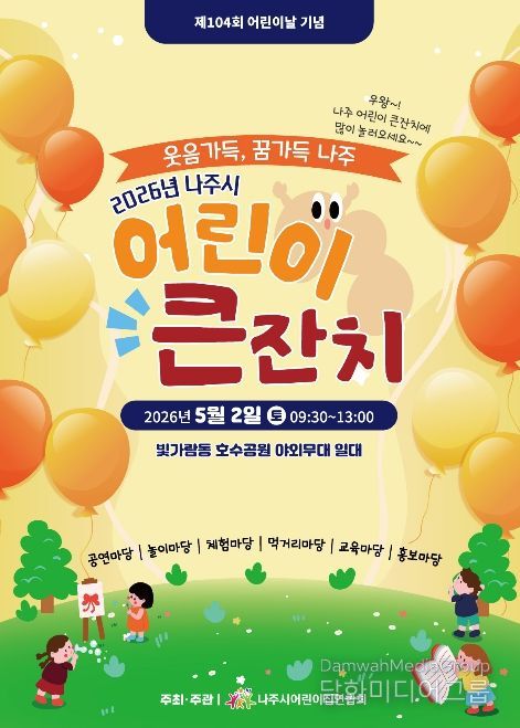 나주시는 오는 5월 2일 오전 9시 30분부터 빛가람호수공원 야외무대 일원에서 나주시어린이집연합회 주최로 ‘2026년 나주시 어린이 큰잔치’를 개최한다고 29일 밝혔다.