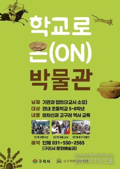 시민행정신문 강갑수 기자 | 구리시는 4월 28일부터 오는 9월까지 고구려 유물 상자를 들고 관내 초등학교를 찾아가는 ‘학교로 온(ON) 박물관’프로그램을 운영한다고 밝혔다.