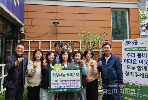 시민행정신문 강갑수 기자 | 대구 수성구 범어3동 희망나눔위원회는 지난 28일 어린이날을 앞두고 관내 저소득 아동을 위해 치킨 교환권 10매(30만 원 상당)를 범어3동 행정복지센터에 기탁했다.