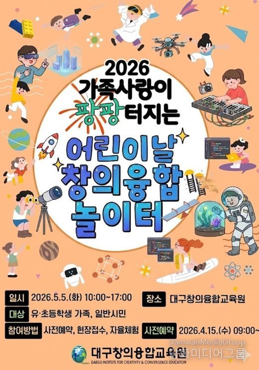 대구시교육청 산하 창의융합교육원이 오는 5월 5일 어린이날을 맞이하여 온 가족이 함께 웃고 즐기며 배울 수 있는 『2026. 어린이날 창의융합놀이터』의 화려한 막을 올린다.