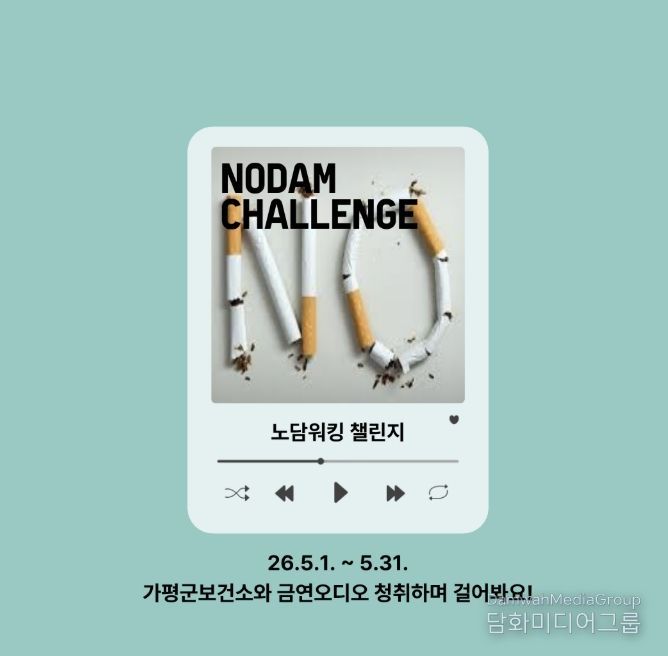 시민행정신문 기자 | 가평군보건소가 ‘세계 금연의 날’을 앞두고 5월 1일부터 한 달간 금연 인식 확산을 위한 ‘노담워킹 챌린지’를 진행한다. 이번 행사는 일상 속 걷기 실천과 금연 홍보를 병행해 군민들의 건강한 생활 습관 형성을 돕고자 마련됐다.